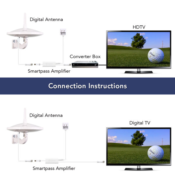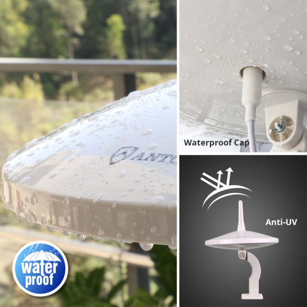 UV coated, weather resistant exterior design combined with anti-interference internal tech protects incoming signals to provide a clear reception and full channel capacity even during inclement weather.