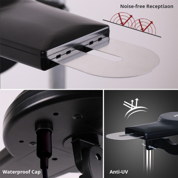 – Omni-directional reception pattern with enhanced VHF range, receives signals in 360°degree directions.