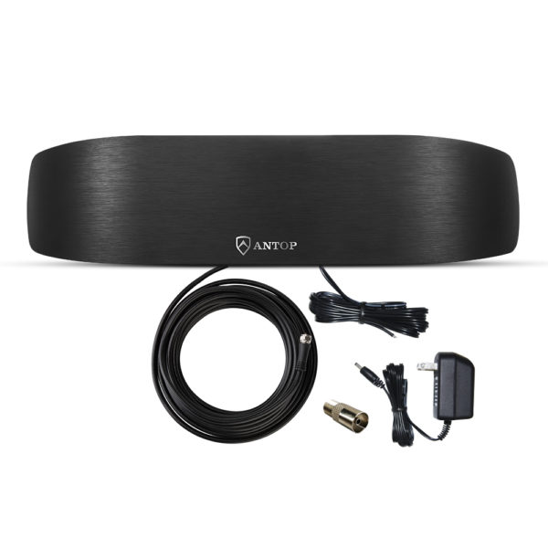ANTOP Bow-style AT-217FM is an Amplified Indoor AM/FM Antenna which features a built in 4G LTE Filter, up to 50-mile signal range, High Gain Performance, Multi-directional reception pattern with a streamline super slim black Hairline finish.