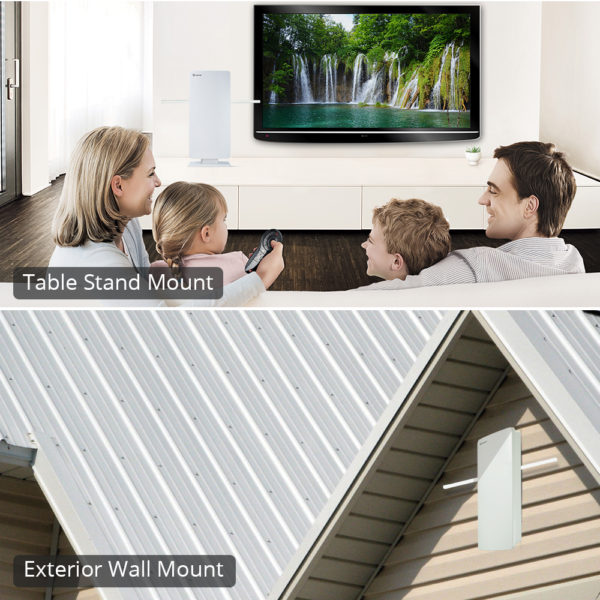 With the new generation of digital antenna technology, the antenna was engineered to cover a wide range of reception, from 0, 70 and 85 miles in diameter with minimum interference for less pictures pixelation, and powerful to feed multiple TV’s for a whole home. The waterproof hard ABS plastic casing with UV coating protects internal elements from any weather conditions, and always keeps it connected to your favorite local TV programs! It supports HDTV, 1080P TV and 4K ULTRA HD and is compatible with TV converter boxes or digital TVs.