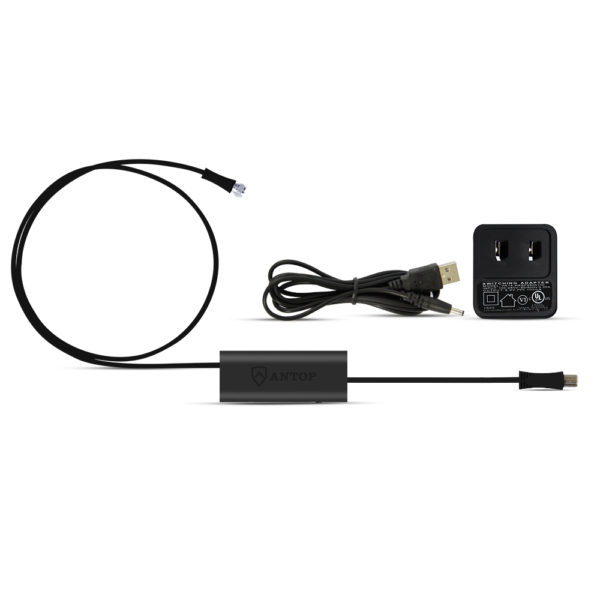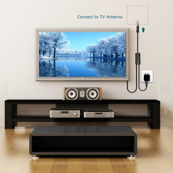 - Works with any non-amplified/passive TV antenna. High gain is designed to amplify VHF and UHF SIGNALS with a LOW NOISE level, less than 2dB. Dual-color indicator, Green for long reception and Yellow for short reception. 3ft and 0.3ft EXTENSION COAXIAL CABLES are attached at either end for easy connection. AT-601B(Black) must be powered to function. Unit can be powered via the included USB cable by connecting to any USB power adapter supporting 5V output on USB-port.