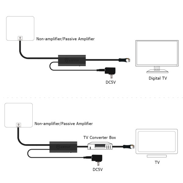 - The SMARTPASS AMPLIFIER, an exclusive technology offered only by ANTOP, uses an all-in-one design to allow an easier connection between a non-amplified/passive antenna and your TV delivering the correct balance between short and long range reception. ANTOP was the first antenna manufacturer to include a BUILT-IN 4G FILTER in all their amplified products to BLOCK 3G and 4G wireless signals to ensure NOISE-FREE digital TV reception.