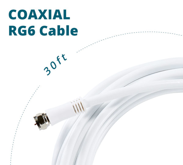 The ANTOP AT-715 30ft/9m Coaxial RG6 Cable can be used for Over the Air antennas, cable modems, satellite TV receivers and other coaxial F-male enabled devices connection, delivering clear picture and sound without electromagnetic & radio frequency interference. Featuring Zinc Alloy F-type connectors, this 75 OHM RG6 cable houses a copper clad center conductor, dielectric insulation and braided aluminum magnesium alloy shielding. This cable is suitable for both indoor & outdoor use.