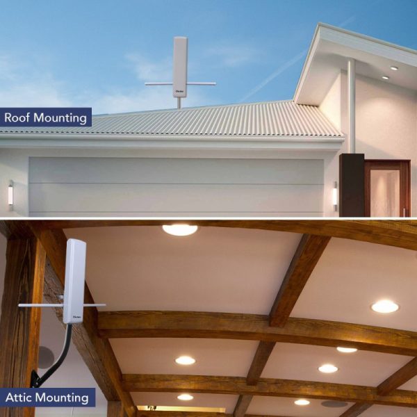 The Dictan Flat-Panel DIN-402VG panel design is aesthetically pleasing and suitable to match a wide range of home exterior styles. The Multi-directional reception, UV coating and weather resistant finish and creative panel design, allow you to install your DIN-402VG antenna in various locations around the exterior of your home: roof, balcony. It is also suitable for indoor use in an attic. The DIN-402VG supports HDTV, 1080P TV and 4K ULTRA HD and is compatible with TV converter boxes or digital TVs.